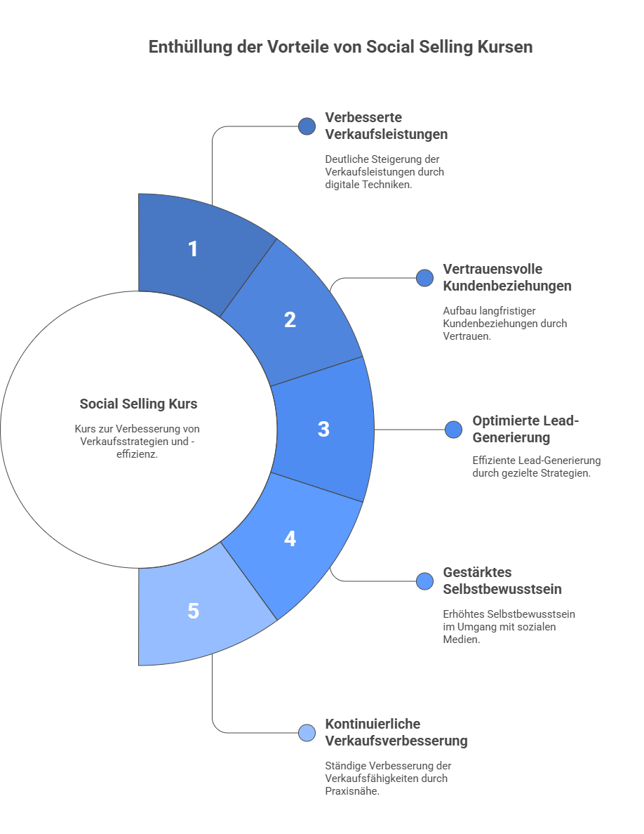 Ein Social Selling Kurs bietet Dir zahlreiche Vorteile, um Deine Verkaufsstrategien zu verbessern und effizienter zu gestalten. Teilnehmer berichten häufig von einer deutlichen Verbesserung ihrer Verkaufsleistungen durch die Anwendung digitaler Verkaufstechniken.